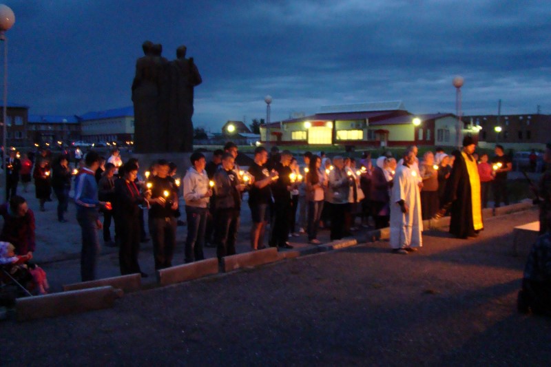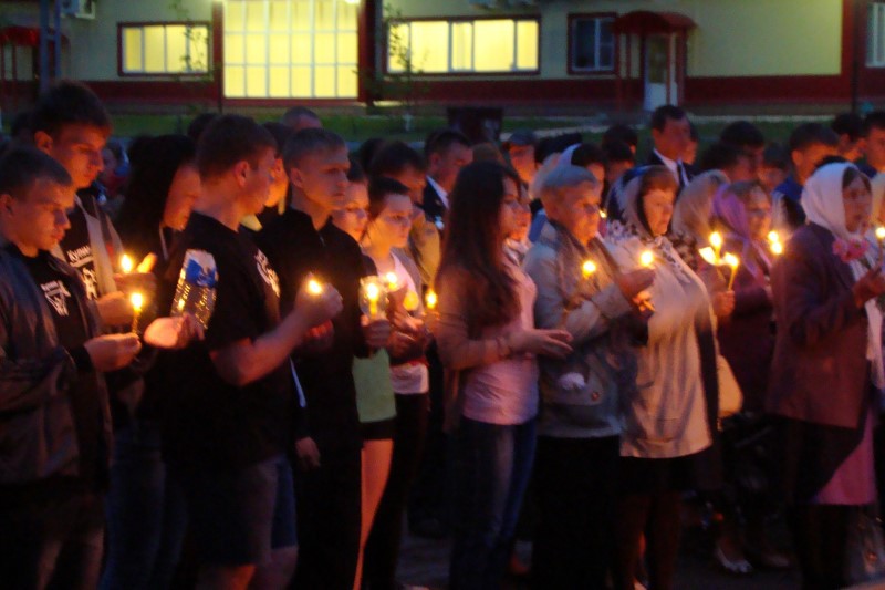 22 июня/воскресенье. Приходом храма во имя святого апостола и евангелиста Луки г. Купино совместно с Молодежным центром Купинского района проведена акция «Свеча памяти», посвященная 73-летию со дня начала Великой Отечественной войны. В 4.00 по местному времени был совершен крестный ход от храма во имя святого апостола и евангелиста Луки г. Купино до мемориала Героям фронта и тыла.