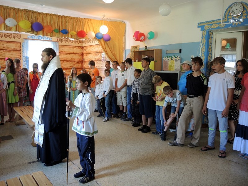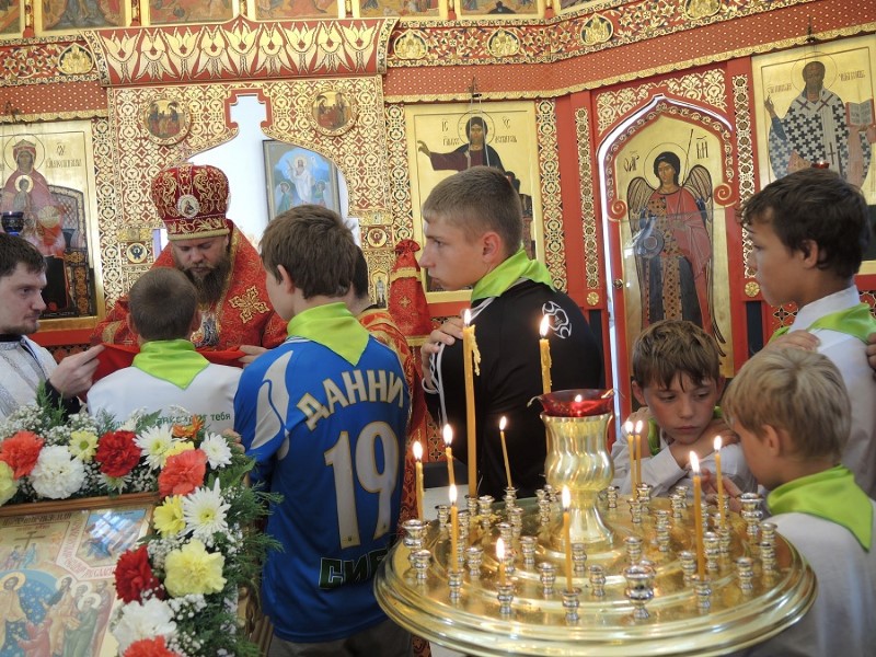 В воскресный день дети в последний раз за период пребывания в лагере присутствовали за Божественной литургией, которую возглавил Его Преосвященство Филипп, епископ Карасукский и Ордынский, все они причастились Святых Христовых Таин.
