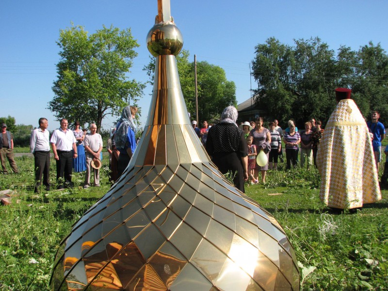 Храм строится в центре села, где когда-то стоял прежний храм, разрушенный безбожниками. С началом строительства нового храма местный библиотекарь Марина Владимировна Хлюстова сумела связаться с младшим сыном последнего священника — отца Иоанна Стадниченко, который был расстрелян в Каинской тюрьме 5 сентября 1937 года. И сейчас она трудится над составлением истории своего села.