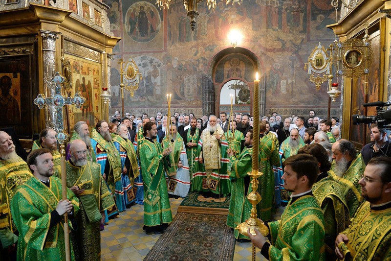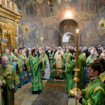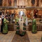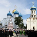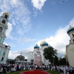 В 9.00 состоялась праздничная Божественная литургия на Соборной площади Троице-Сергиевой Лавры, которую возглавил Патриарх Кирилл в сослужении прибывших на торжества Преосвященных архиереев и духовенства.