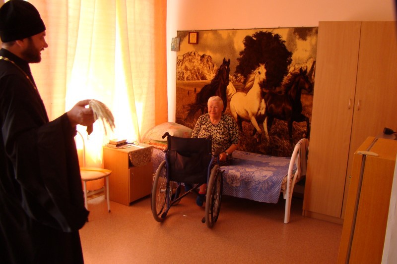 В селе Медяково иеромонах Мелхиседек посетил дом-интернат, где проживают пожилые люди. При встрече он рассказал жителям дома о преподобном Сергии Радонежском, окропил живущих и их комнаты святой водой.