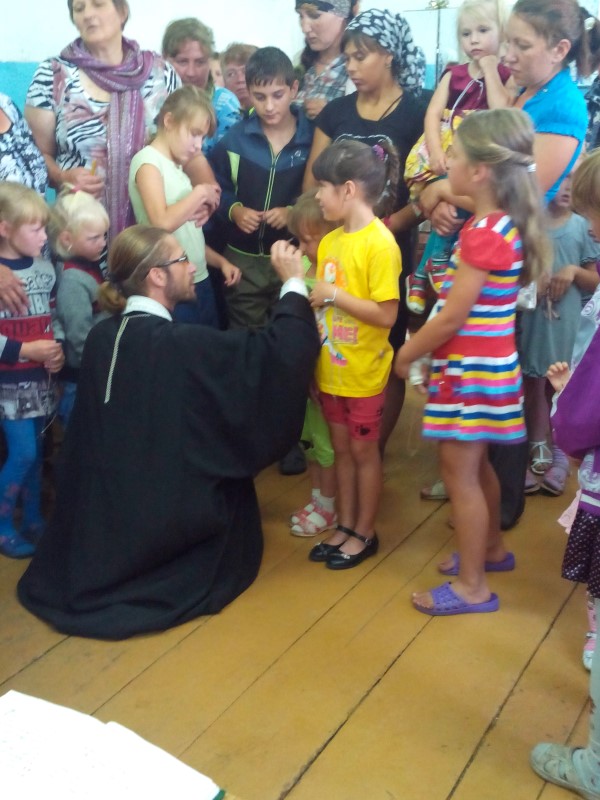 Также иерей Сергий привёз с собой в село 200 кг вещей, как абсолютно новых, переданных людям благочестивыми грузинскими предпринимателями из гипермаркета одежды «Эврика», так и немного б/у, собранных волонтёрами г. Карасука.