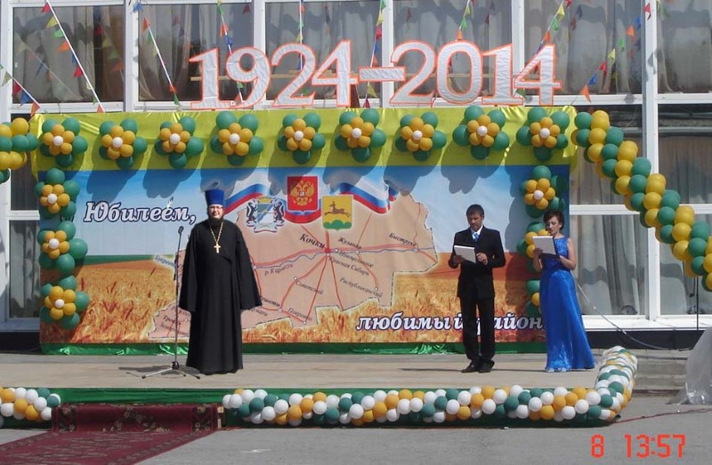 В торжественной концертной части праздника, которая началась после приема гостей, звучали различные поздравления с юбилеем района. От имени епископа Карасукской епархии Владыки Филиппа кочковцев тепло поздравил благочинный Восточного округа иерей Андрей Гусев.