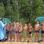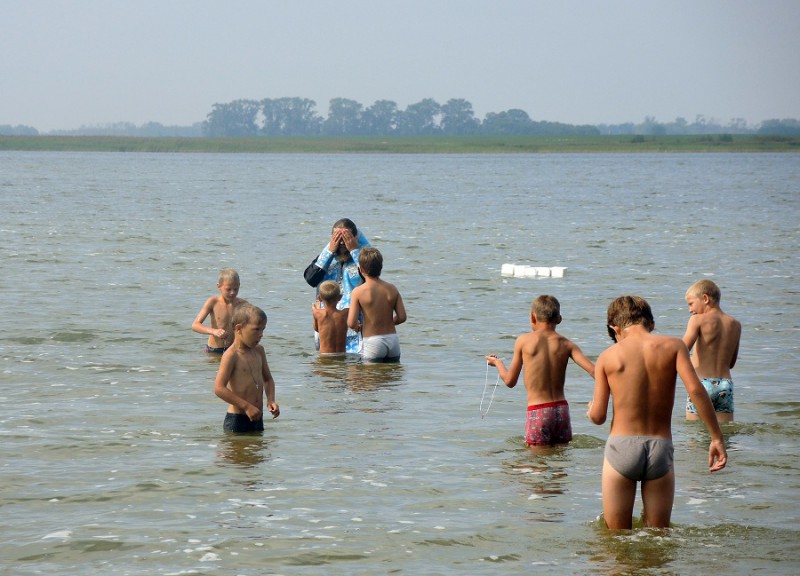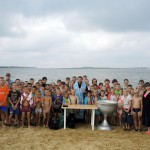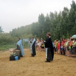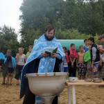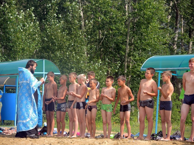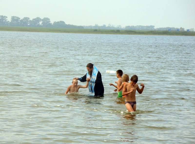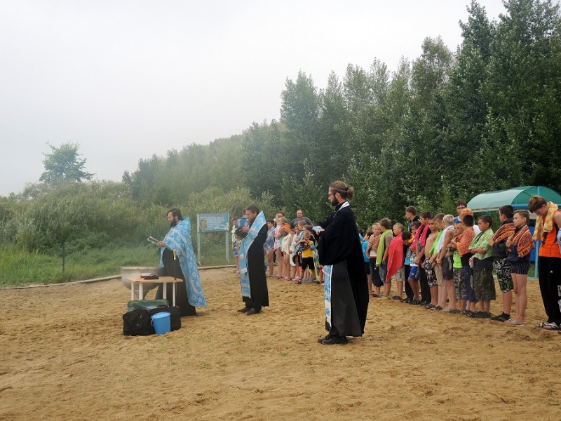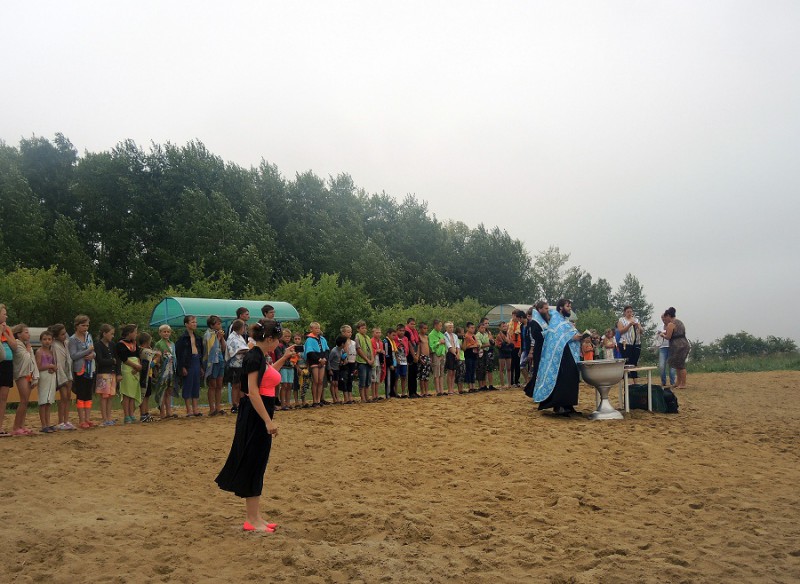 После огласительной беседы 55 детей согласились принять Таинство Крещения, которое состоялось на берегу Благодатного озера недалеко от детского лагеря.