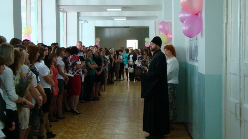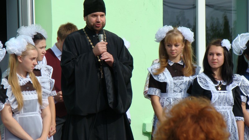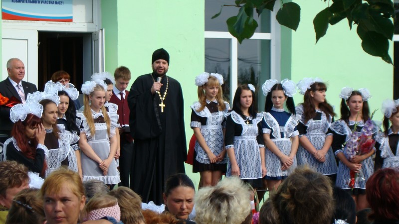 1 сентября/понедельник. В День знаний иеромонах Мелхиседек (Свистелин), благочинный Центрального округа Карасукской епархии, посетил торжественную линейку в Медицинском техникуме города Купино, где поздравил всех преподавателей и учащихся техникума с началом нового учебного года.