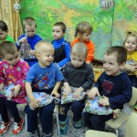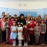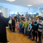 Затем состоялась беседа с детьми о православной вере. Владыка всем крещеным детям раздал нательные крестики и иконы прп. Сергия Радонежского. По традиции дети вместе с Владыкой пропели молитву «Отче наш» и он их всех окропил святой водой.