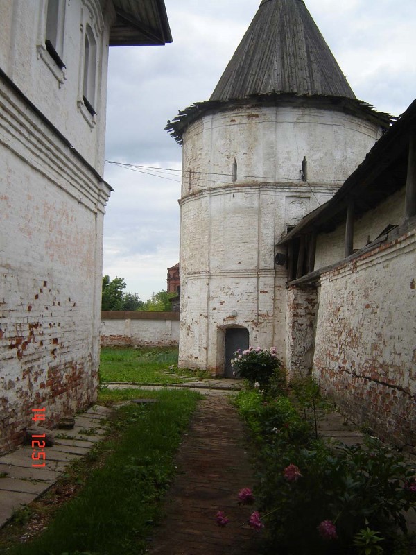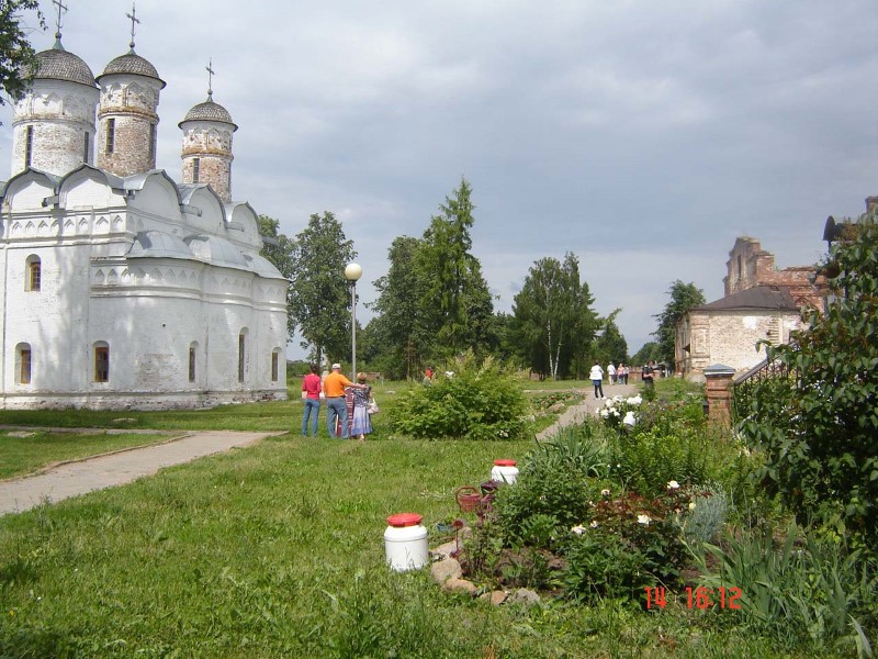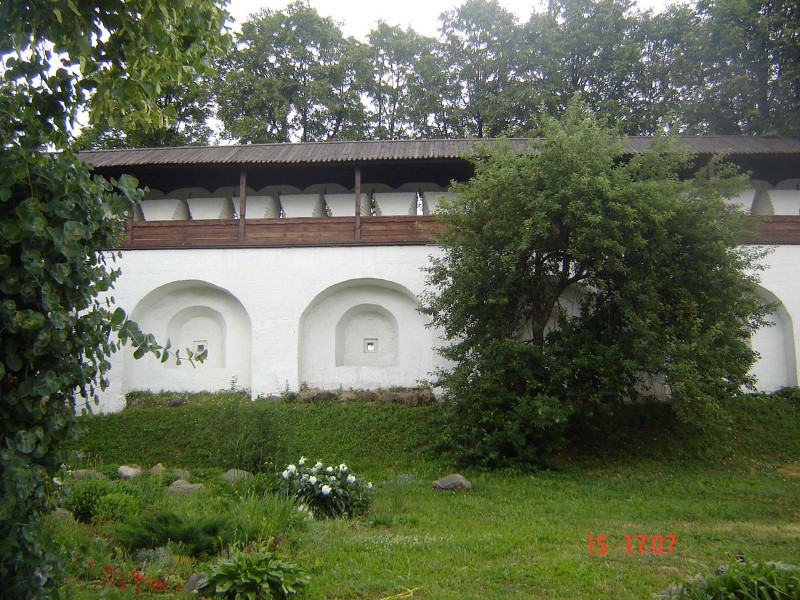 Огромные стены монастыря, покрытые мхом и лишайником, напоминали собой древнюю крепость. Просто невероятно, как она могла поместиться возле такого маленького поселка. И как без кранов и белазов была построена такая крепость! Какие русские богатыри построили ее?