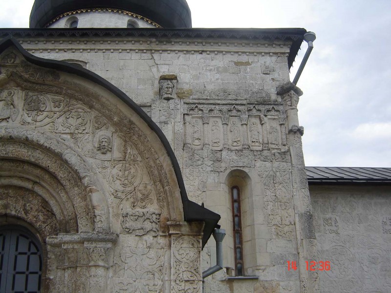 После Александрова направились в Юрьев Польский. Город был основан в 1152 г Юрием Долгоруким. Слово «Юрьев» произошло от имени Юрий, а «Польский» — от Суздальского Ополья. Поразил нас своей архитектурой Георгиевский белокаменный собор, сооружённый в 1230—1234 годах князем Святославом Всеволодовичем. Он сохранился с того времени почти в неизменном виде. Снаружи его украшают барельефные фрески по белому камню!