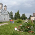 Перед нами предстало искусство Древней Руси, которое не хуже Византийского! Рядом находится Михайло-Архангельский монастырь — комплекс 18 века. Это древность, утопающая в цветах. Есть и насельники монастыря. Совершаются богослужения.