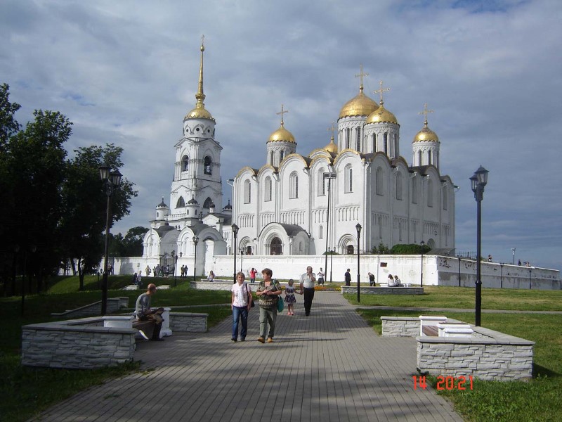 Успенский собор воздвигнут князем Андреем Боголюбским, как духовный цент Руси. В храме сохранились Фрески Андрея Рублева и Даниила Черного. Отстояли всенощную в древнем храме, в сердце Древней Руси! Чуть ниже храмового комплекса смотровая площадка. Внизу видна панорама города. На площадке огромный памятник: князь Владимир Киевский — основатель града Владимира на коне и святитель Федор — крестители Владимировской земли.