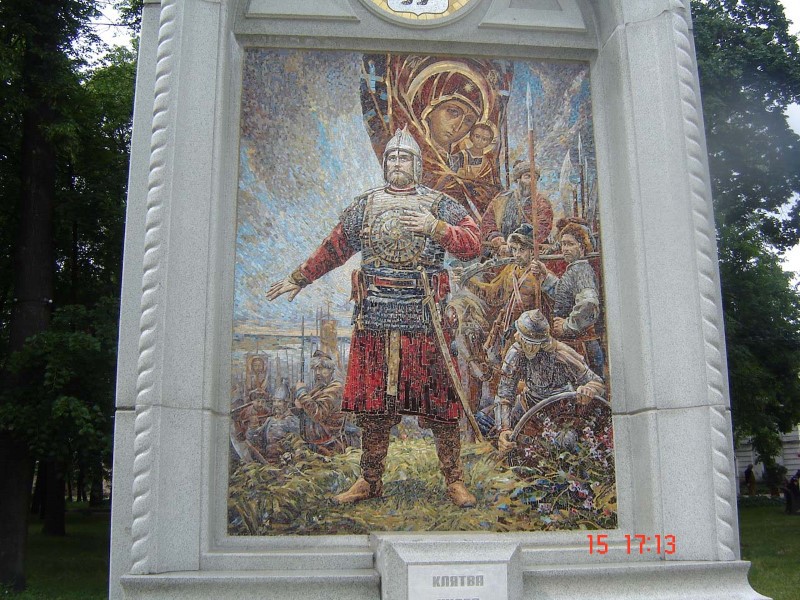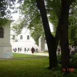 На обратном пути посетили поселок Борисоглебск, расположенный в хвойном лесу, и монастырь в честь святых братьев Бориса и Глеба, сыновей равноапостольного Владимира. Перед зданием администрации памятник Александру Пересвету. В это время проходил митинг против наркотиков с участием школьников. Совсем как в наших сибирских районных центрах. Отрадно было слышать, что в речах на митинге вспоминались духовные ценности.