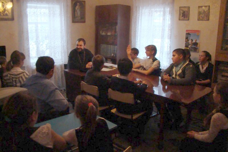 25 сентября/четверг. В воскресной школе при храме во имя святого апостола и евангелиста Луки г. Купино иеромонах Мелхиседек (Свистелин), благочинный Центрального округа Карасукской епархии, провел занятия с учащимися 4-го класса лицея № 2 г. Купино на тему: «Понятие о Священном Писании».