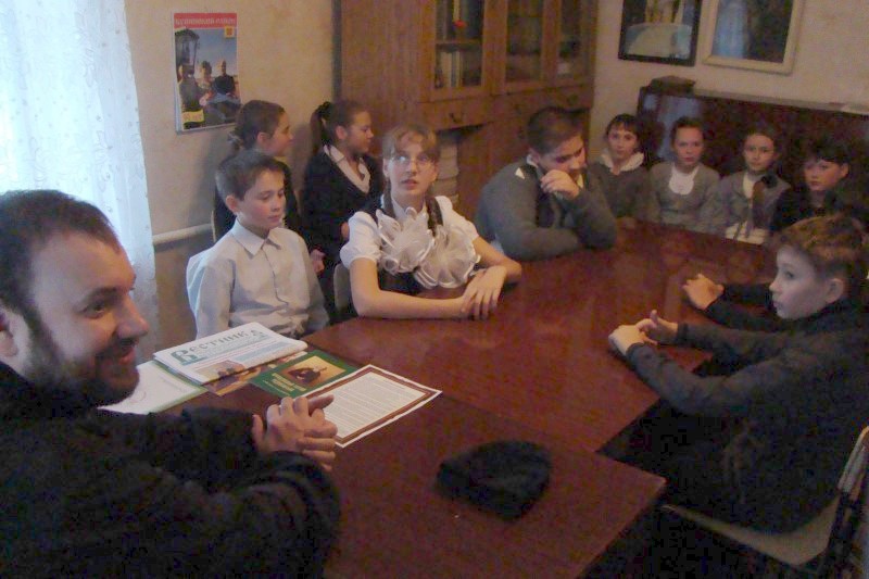 Все учащиеся по окончании беседы получили в подарок газету «Наша Епархия».