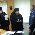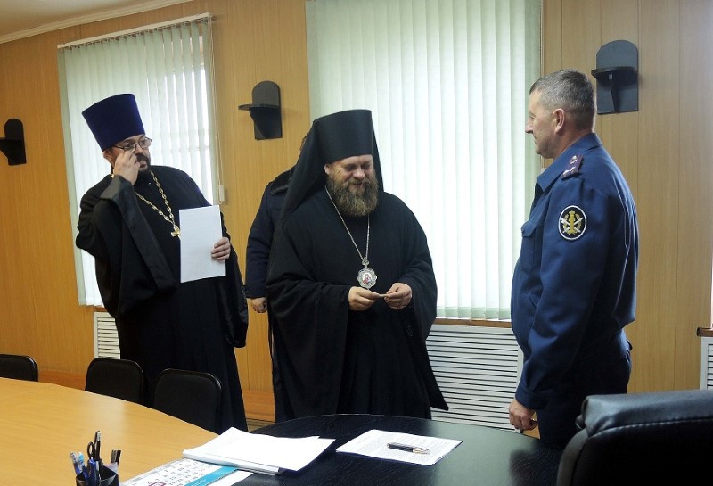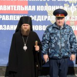 После чего епископ Филипп с сопровождающими прошел на территорию исправительного учреждения, где находится храм во имя прп. Сергия Радонежского, который в прошлом году был освящен.