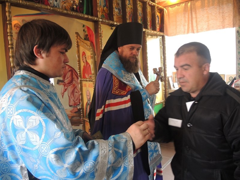 13 октября/понедельник. Его Преосвященство епископ Филипп прибыл в ИК-15 пос. Табулги Чистоозерного района, где его встретил начальник колонии Пугачев Евгений Анатольевич и настоятель храма в честь Успения Пресвятой Богородицы р. п. Чистоозерного иерей Илия Березовский.