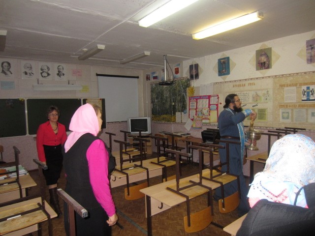 По просьбе директора школы Елены Алексеевны Давыдовой состоялось освящение здания общеобразовательной школы имени Сергея Лазарева в с. Довольном.