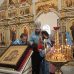 По окончании Литургии состоялся праздничный молебен, в конце которого Владыка окропил всех святой водой.