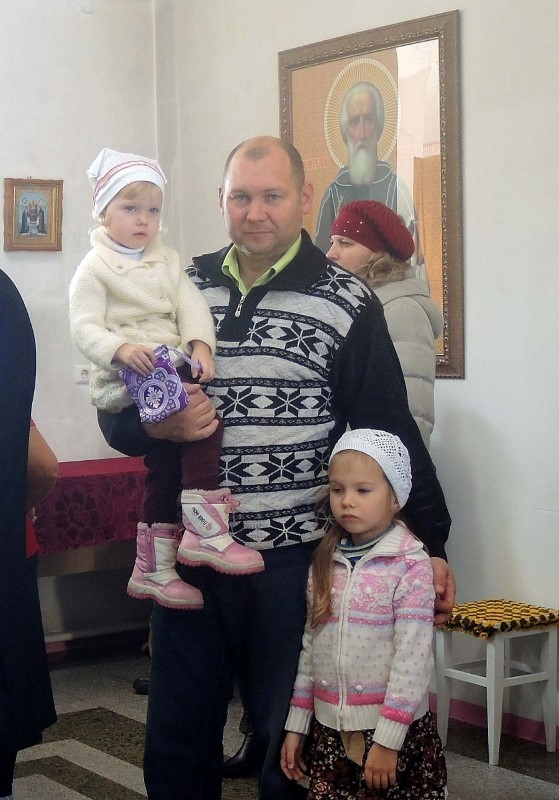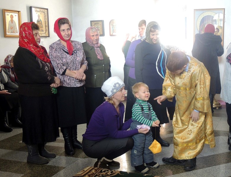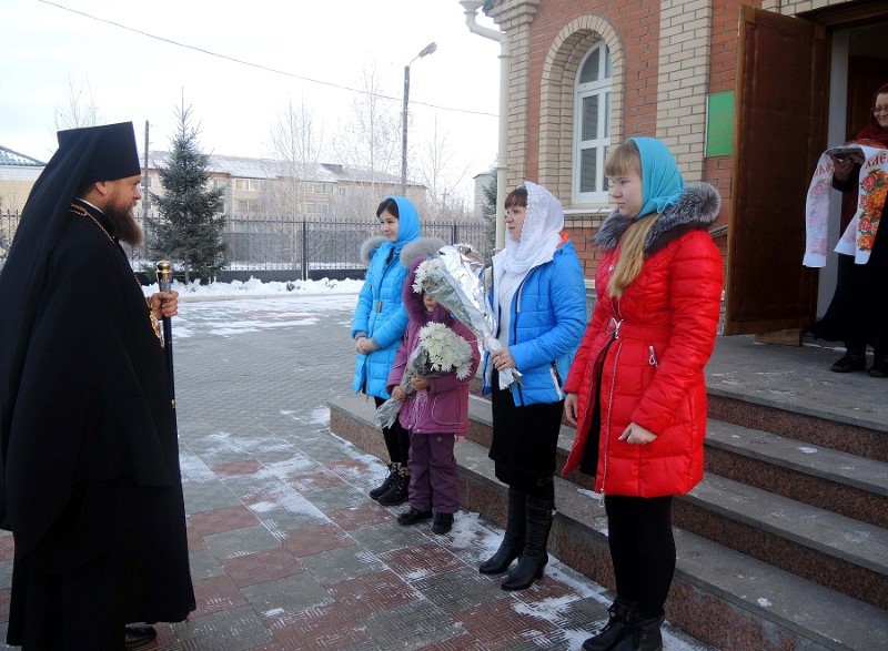 По окончании Литургии епископ Филипп поздравил секретаря Карасукской епархии иерея Игоря Непша с рождением дочери. Владыка вместе с прихожанами преподнес отцу Игорю букет цветов и памятный подарок.