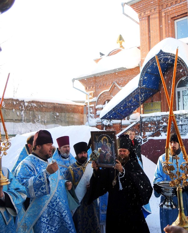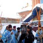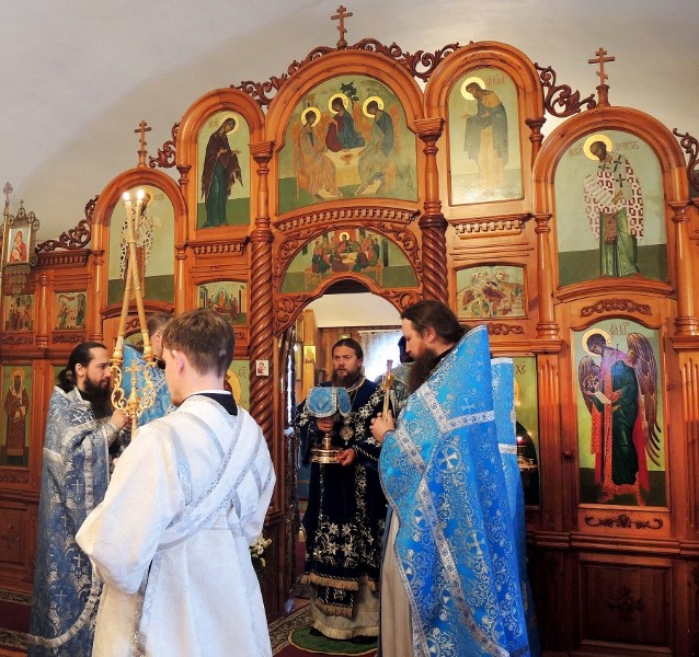 По окончании Литургии Его Высокопреосвященство митрополит Тихон и епископ Филипп совершили молебен перед иконой Богородицы «Скоропослушница», и крестный ход вокруг храма.