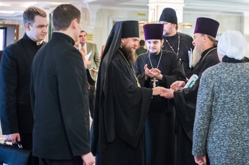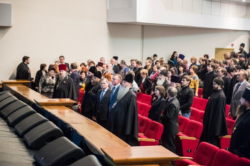 Также прозвучал доклад руководителя Епархиального отдела по взаимодействию Церкви и общества Александра Витальевича Красова «Единство истории, единство народа, единство России». Он подчеркнул, что Российская Федерация уже многие столетия является многонациональным государством. Проблему взаимодействия между представителями национальных объединений сейчас успешно решает деятельность Новосибирского отделения Всемирного Русского Народного Собора, председателем которого в столице Сибири является Митрополит Тихон. Согласно статистическим данным, на территории Новосибирской области проживает 93,1% русских, 1,2% немцев, украинцев и татар — по 0,9%, более 100 других национальностей составляют 3,9%. В рамках работы Новосибирского отделения ВРНС в преддверии Дня народного единства состоялась встреча представителей национальных и культурных объединений и Митрополита Новосибирского и Бердского Тихона, на которой было принято решение о создании Союза «За национальное единство».