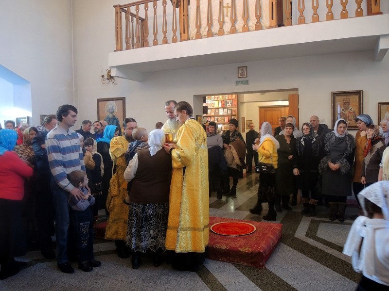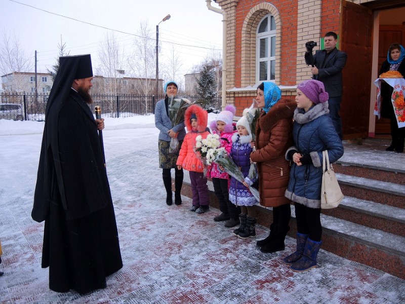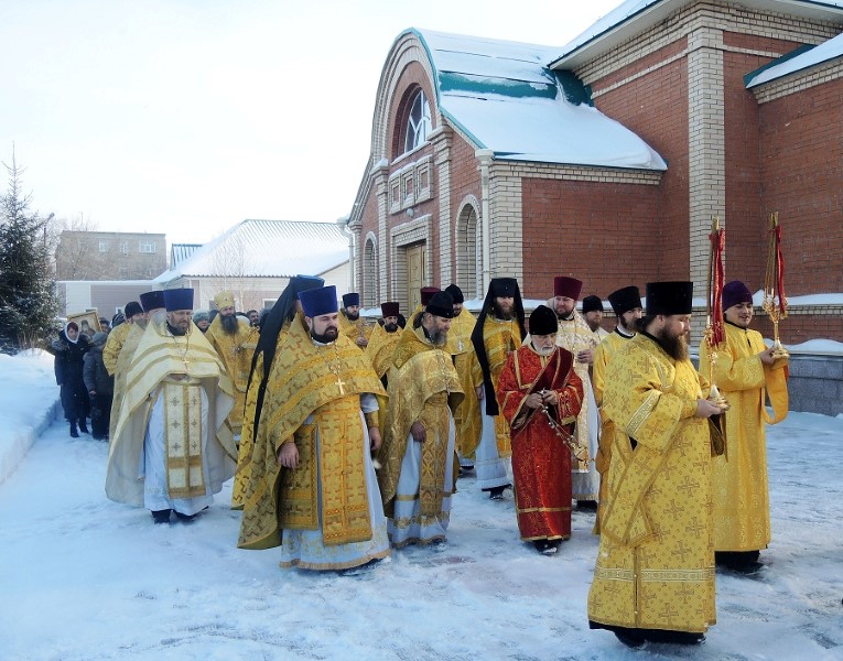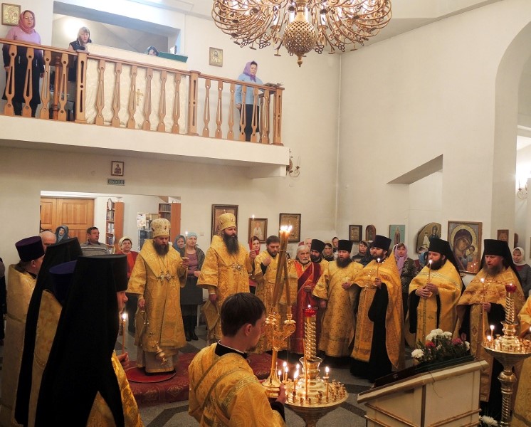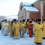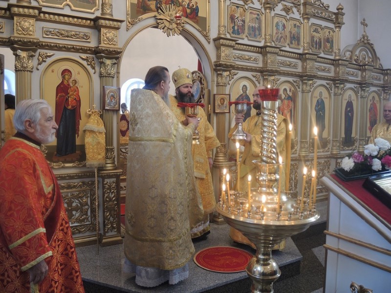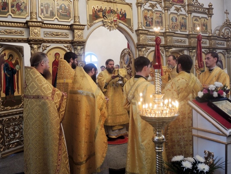 В 9.00 началась Божественная литургия, которую возглавили епископ Филипп и епископ Феодосий. По окончании Литургии был совершен крестный ход вокруг собора.