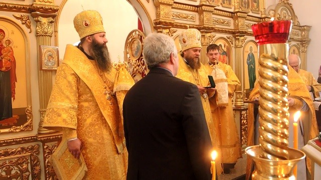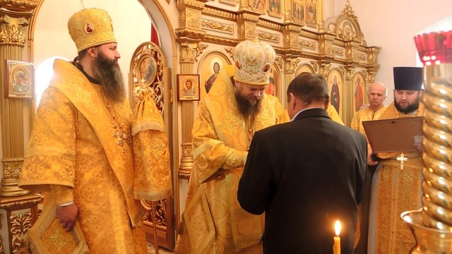 И поэтому в конце года, в день престольного праздника, Владыка поблагодарил духовенство епархии, благодетелей собора и наградил их юбилейными медалями.