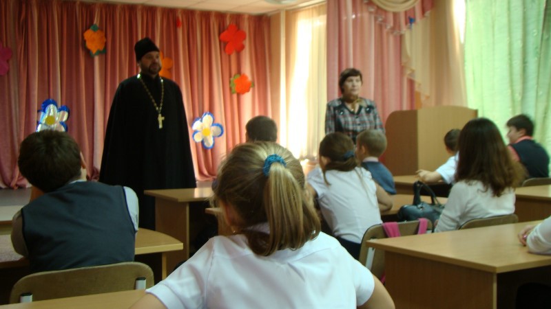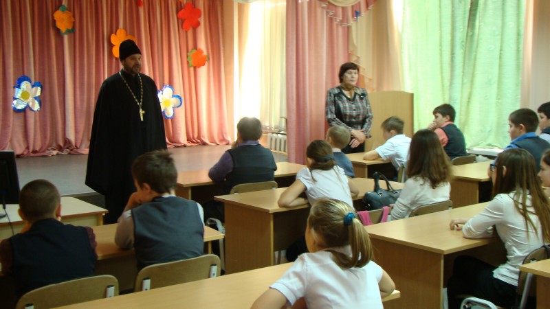 Иеромонах Мелхиседек рассказал учащимся о значении Православия в становлении русской государственности. По окончании занятия иеромонах Мелхиседек поздравил учащихся с наступающим праздником Рождества Христова и благословил их на дальнейшее успешное обучение.