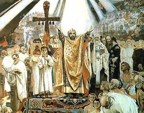 мы считаем 988 год — год Крещения Руси. Тогда проживавшие на нашей территории разрозненные славянские, финно-угорские, тюркские и балтские племена обрели центр духовной консолидации и включились в процесс цивилизационного строительства. В 988 году завершилась наша предыстория и началось целеустремленное историческое бытие, скрепленное единством нравственных координат, общностью национальных героев и непрерывностью летописной хроники. Киевская Русь приняла цивилизационную эстафету у Византии, унаследовав в неповрежденной православной чистоте учение Христа, но заменив косность восточно-римской социальной структуры на русскую энергию и динамизм.