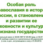 «О свободе совести и о религиозных объединениях», «признается особая роль Православия в истории России, в становлении и развитии ее духовности и культуры».