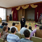 Они своими силами готовят Рождественский концерт, после чего Владыка читает с ними молитву «Отче наш», окропляет их святой водой и дарит сладкие подарки и иконы.