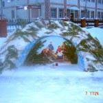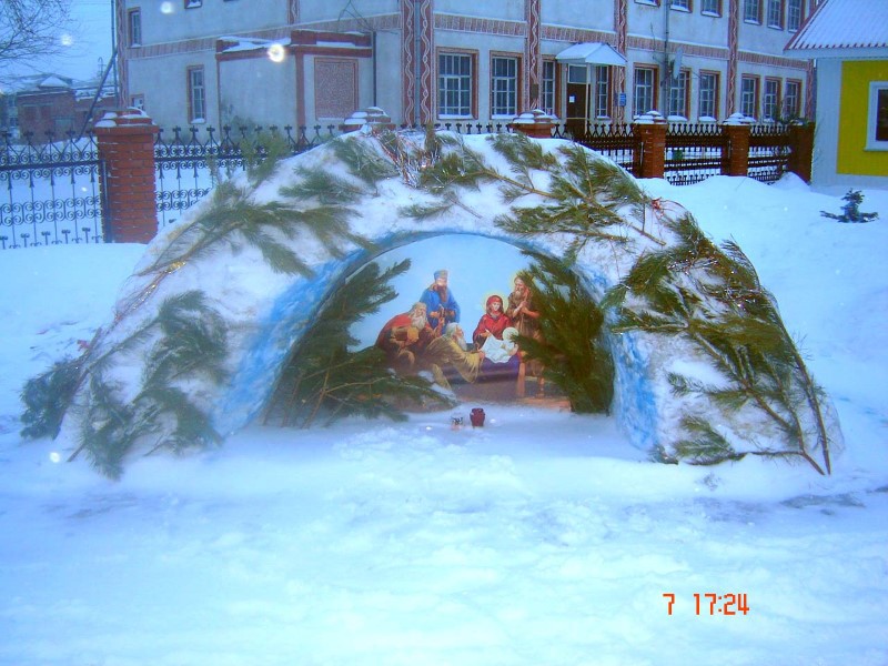 Впервые в этом году в ограде храма сделали вертеп, а подросшие елки украсили ночными гирляндами. После богослужения по традиции была общая трапеза.
