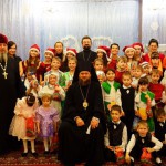 Владыка поздравил детей с праздником Рождества Христова — по традиции дети показали Рождественский концерт, затем всех окропили святой водой и раздали рождественские подарки.