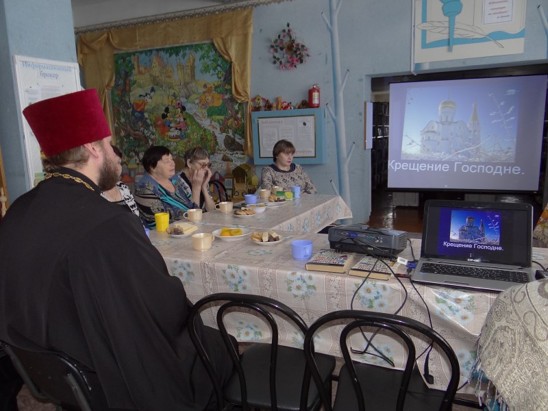 15 января 2015 г. в сельской библиотеке села Сарыбалыка проходило мероприятие, приуроченное к святым праздникам. На встречу с местным населением был приглашен отец Роман.