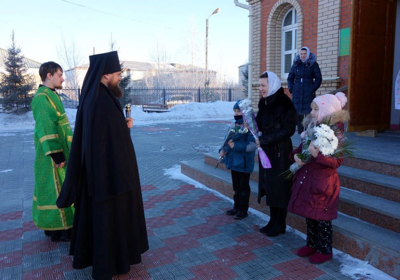 По окончании Литургии Владыка поздравил всех прихожан собора с праздником Сретения Господня, а также с последней подготовительной неделей перед Великим постом, Неделей о Страшном суде. Владыка напомнил, что в этот день бывает заговенье на мясо и следующая седмица в просторечии называется масляной или масляницей. Святая Церковь называет ее «светлым предпутием воздержания» и «началом умиления и покаяния», и долг каждого православного человека достойно подготовиться к Великому посту. Он сказал, что родители должны провести особую работу с детьми, чтобы также настроить их на пост и морально, и духовно.