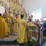Перед началом Божественной литургии епископ Филипп вместе со священнослужителями и прихожанами встретил икону с частицей мощей свт. Луки Крымского.