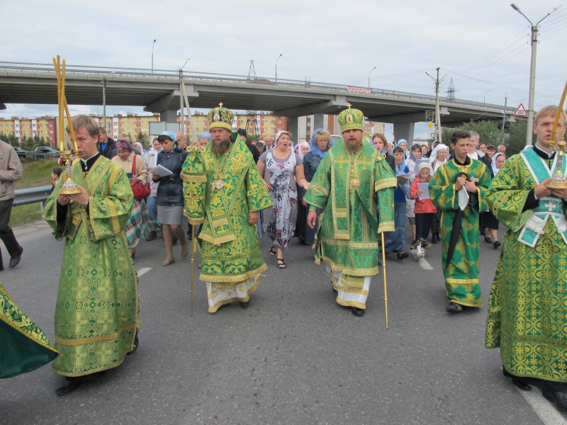 1 августа на престольном празднике в храме в честь преподобного Серафима Саровского Чудотворца (настоятель протоиерей Олег Нелин, г. Новый Уренгой), оба архипастыря совершили Всенощное бдение и Божественную литургию. Епископ Салехардский и Ново-Уренгойский Николай поблагодарил Владыку Филиппа за визит, поздравил с праздником и преподнёс в дар икону св. прп. Серафима Саровского.