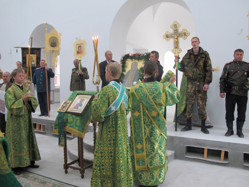 После богослужения состоялся Крестный ход от храма в честь преподобного Серафима Саровского Чудотворца до строящегося храма и церковного комплекса.