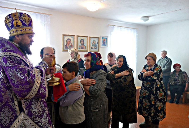 По окончании Литургии Владыка поздравил всех с началом Великого поста и напомнил, что на сегодняшний день это один из самых бедных приходов нашей епархии. И по милости Божией нашелся священник, который согласился жить в этом селе и совершать здесь божественные службы.
