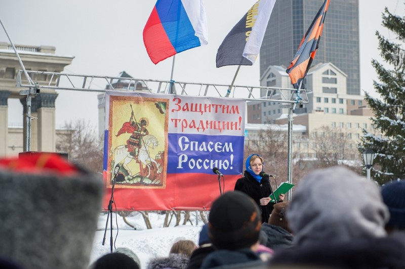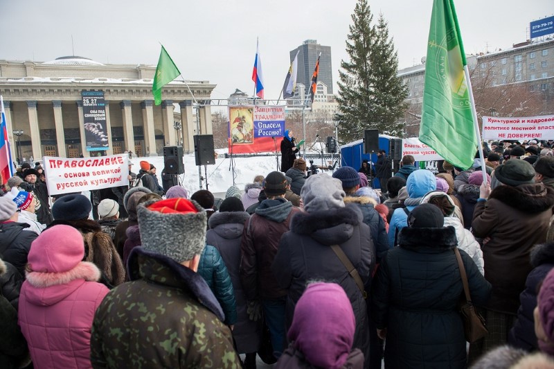 1 марта 2015 года, в неделю Тожества Православия, на центральной площади города Новосибирска состоялся массовый митинг в защиту духовно-нравственных ценностей, против попыток раскола общества действиями, оскорбляющими чувства верующих «Защитим традиции! Спасем Россию!».,