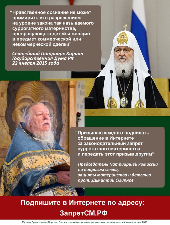 Призываем всех к голосованию за запрет суррогатного материнства и вывода абортов из ОМС http://citizengo.org/ru/14972-zapretit-surrogatnoe-materinstvo-v-rossii http://citizengo.org/ru/19313-podderzhivaem-predlozhenie-svyateyshego-patriarha