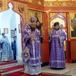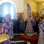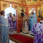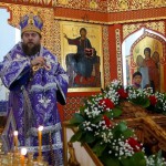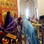 По окончании Литургии состоялось поклонение Честному и Животворящему Кресту, который накануне, во время всенощного бдения, был вынесен из алтаря на середину храма.