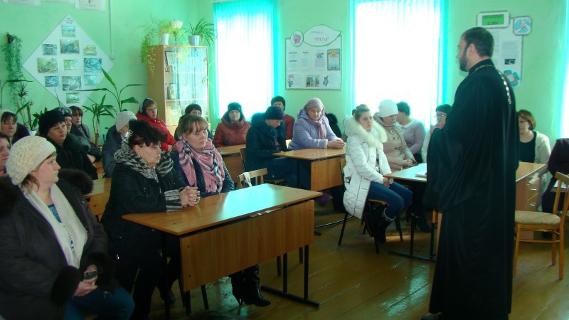 После встречи с селянами иеромонах Мелхиседек посетил школу села и принял участие в родительском собрании учащихся 3 класса школы по выбору модуля ОПК в учебном предмете ОРКСЭ.