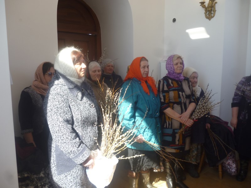 По завершении Таинства Евхаристии настоятель прочёл молитву на освящение ваий и окропил святой водой принесённые прихожанами ветви верб.