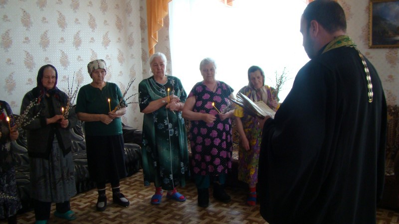 4 апреля/суббота. В преддверии праздника Входа Господня в Иерусалим иеромонах Мелхиседек (Свистелин), благочинный Центрального округа Карасукской епархии, посетил Дом престарелых города Купино.