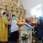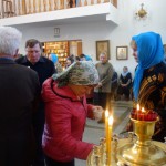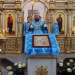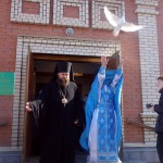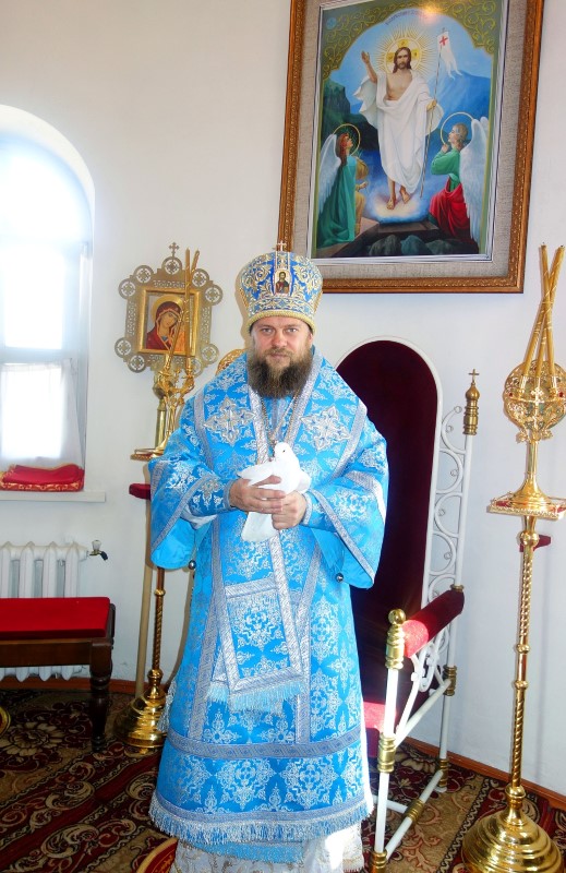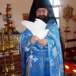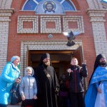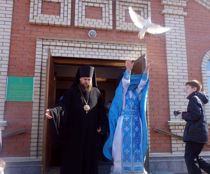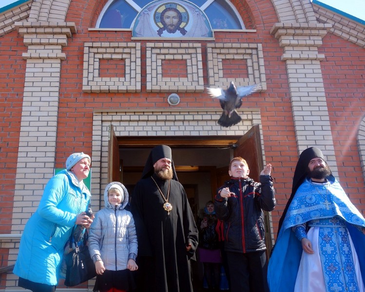 По окончании Литургии было совершено славление у иконы Благовещения Пресвятой Богородицы на центральном аналое, по окончании которого епископ Филипп вместе со священнослужителями и прихожанами на паперти храма выпустил белых голубей, взмывших в голубое весеннее небо.
