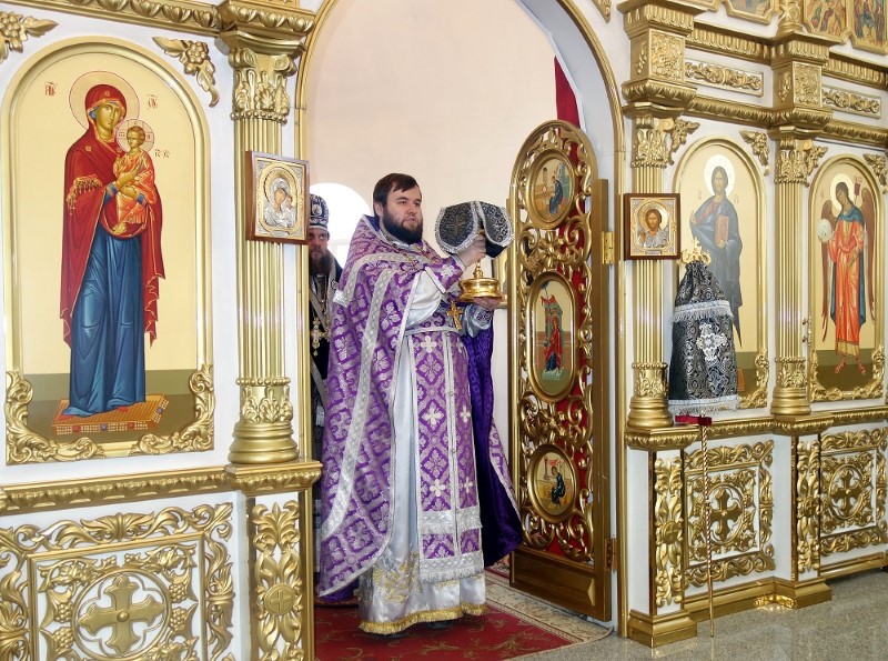 За Божественной литургией епископ Филипп по благословению Святейшего Патриарха Кирилла возвел иерея Андрея Гусева, благочинного Восточного округа Карасукской епархии, в сан протоиерея.