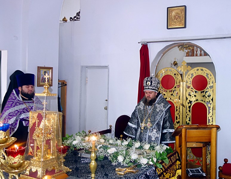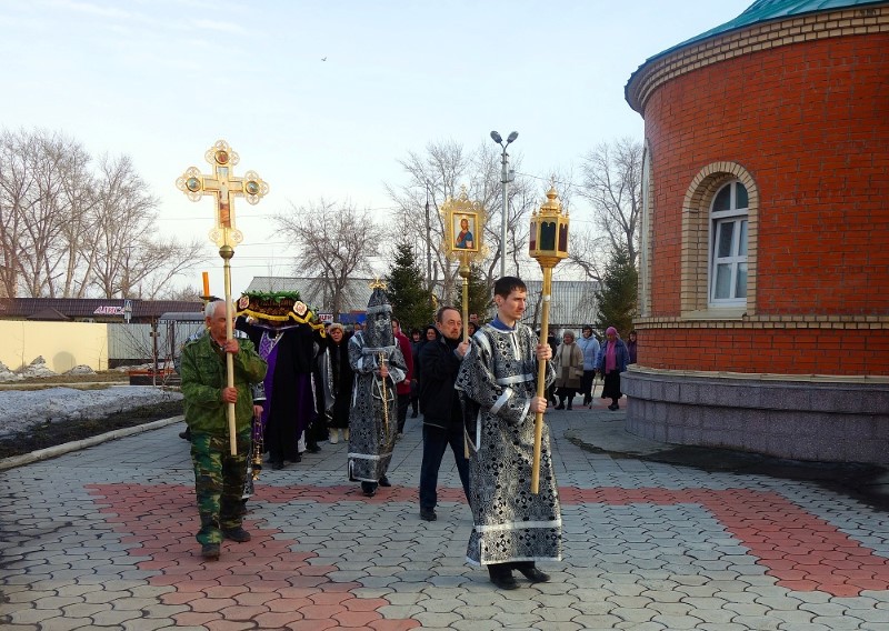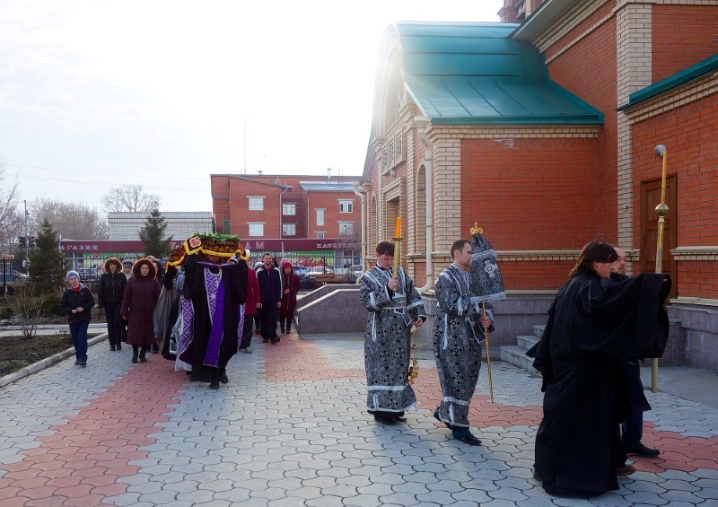 10 апреля, в Великий Пяток, Воспоминание Святых спасительных Страстей Господа нашего Иисуса Христа, в 14:00 епископ Филипп совершил вечерню с выносом Плащаницы Спасителя в Кафедральном соборе св. апостола Андрея Первозванного г. Карасука.