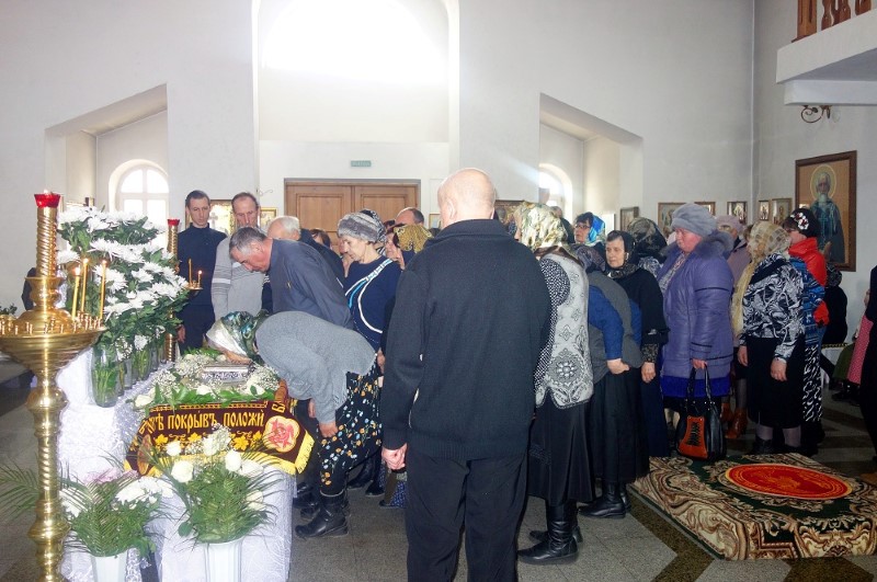 Затем перед Святой Плащаницей был прочитан умилительный канон «На плач Пресвятой Богородицы», в котором выражены те чувства и те страдания, которые испытывала Пресвятая Дева, стоя у распятого на Кресте Своего возлюбленного Сына и во время, когда Его тело снимали с Креста.