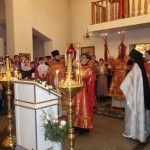По окончании Литургии Владыка поздравил священнослужителей собора и всех прихожан со светлым праздником Пасхи.