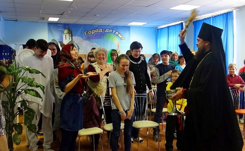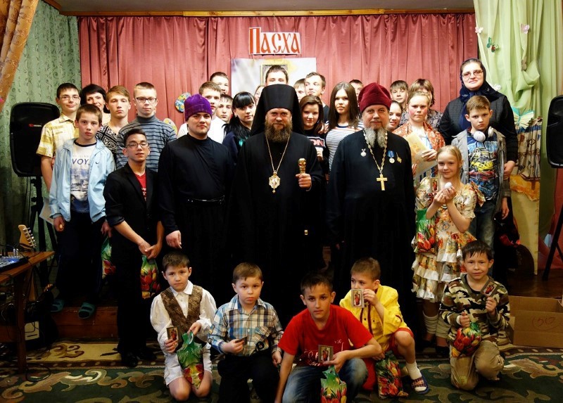 15 апреля 2015 года Его Преосвященство епископ Филипп и протоиерей Александр Гришин посетили детские дома №13 и №12, в которых поздравили детей-сирот с праздником Пасхи. Дети с большой радостью ждали приезд Владыки, они своими силами подготовили Пасхальный концерт, рисовали с удовольствием рисунки, готовили поделки.